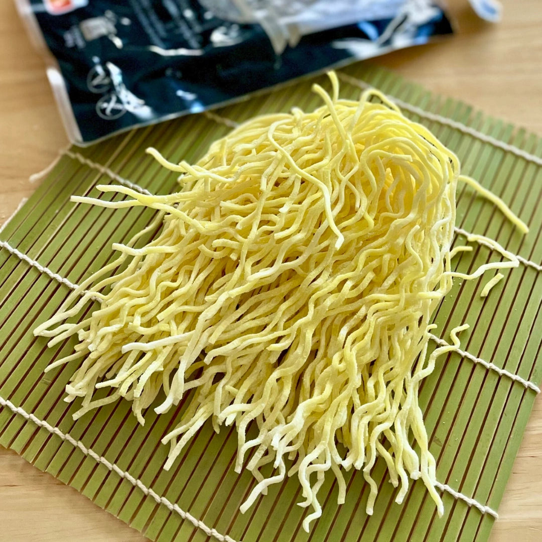 Die KOMEKO RAMEN in 1–1,5 Liter kochendes Salzwasser geben, 2 Minuten köcheln lassen, abtropfen und in 2 Suppenschüsseln geben. - Anrichten
