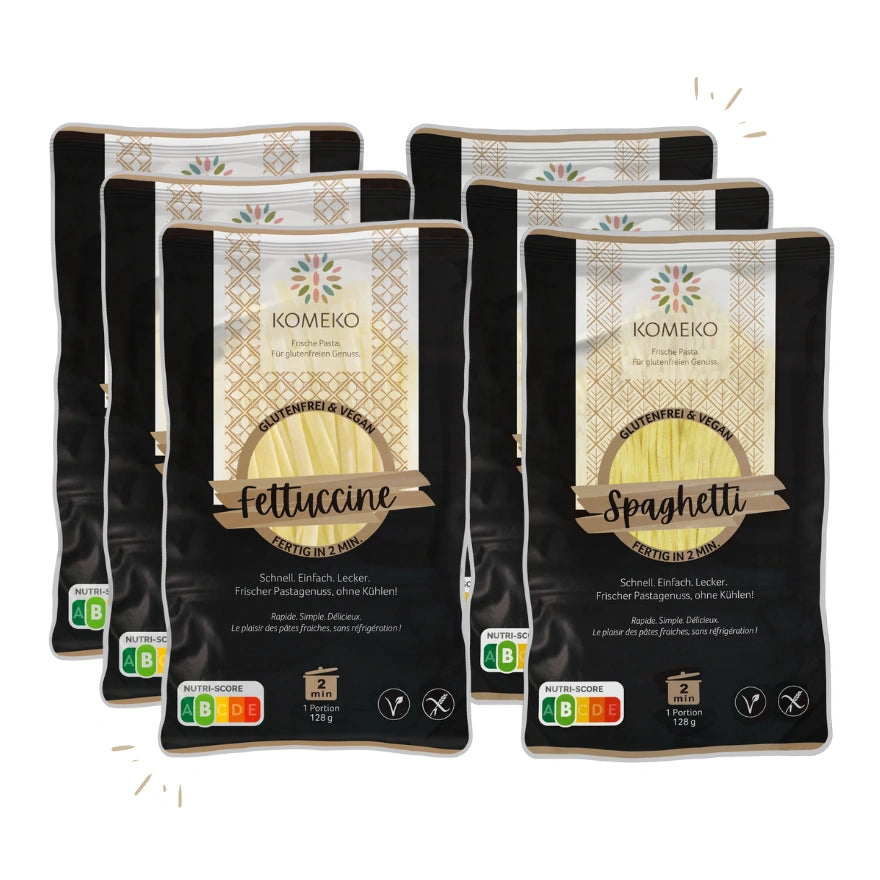Komm mit unserer KOMEKO Pasta in den Genuss von traditioneller frischer Pasta, die glutenfrei ist und nicht gekühlt werden muss. Die Pastasorten aus Reismehl überzeugen mit ihrem kompromisslosem Geschmack, ihrer bissfesten Textur und der schnellen Zubereitung.