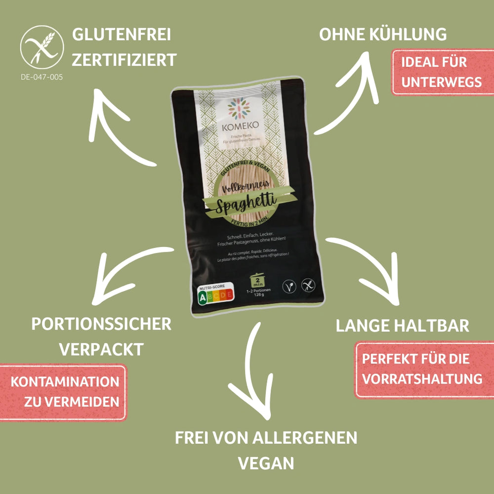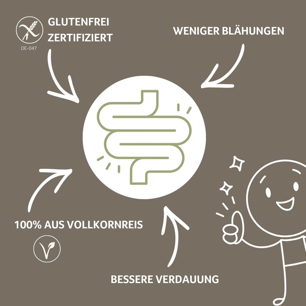Besteht aus 100 % Reis und ist von der DZG glutenfrei zertifiziert – ideal für Menschen mit Zöliakie oder Glutenunverträglichkeit.
