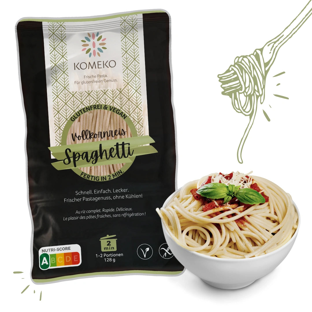 Komm mit unserer KOMEKO Pasta in den Genuss von traditioneller frischer Pasta, die glutenfrei ist und nicht gekühlt werden muss. Unsere Spaghetti aus Vollkornreismehl überzeugen mit ihrem kompromisslosem Geschmack, ihrer bissfesten Textur und der schnellen Zubereitung.